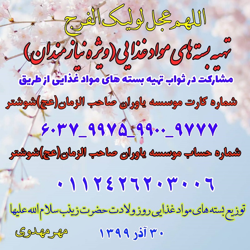شما عزیزان نیز میتوانید در این امر خیر شریک باشید.