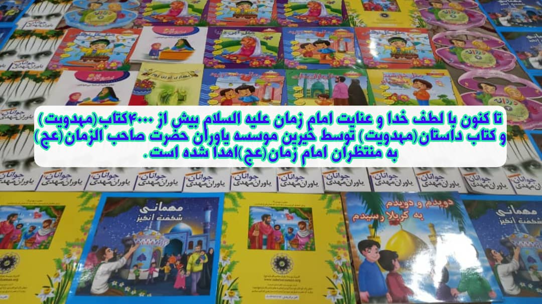 تا کنون با لطف خدا و عنایت امام زمان ارواحنافداه بیش از 4000 کتاب در زمینه مهدویت توسط خیرین موسسه یاوران حضرت صاحب الزمان(عج)تهیه و به منتظران حضرت مهدی(عج)اهدا شده شده است.